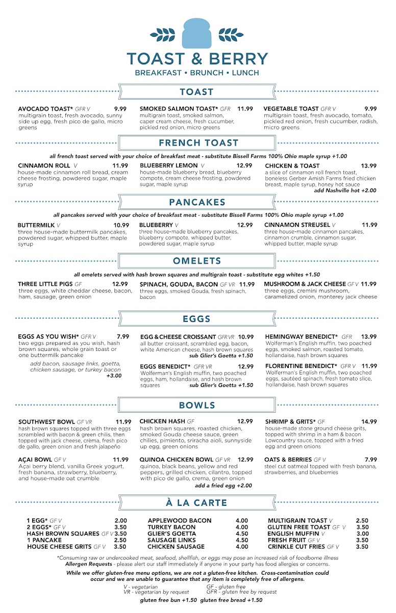 Nestled in Cincinnati, Ohio, Toast & Berry is a delightful haven for brunch lovers. The menu boasts a variety of mouthwatering dishes, featuring standout items like fluffy blueberry pancakes and the indulgent blueberry lemon French toast. Customers rave about the perfectly seasoned eggs and the must-try hash brown squares, especially when paired with the house sauce. Each dish is crafted with care, ensuring a delightful experience without the need for extra seasoning.